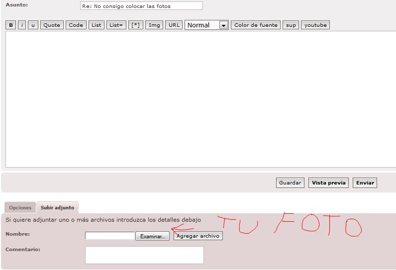 Hola, siento tener que reabrir este tema pero tengo una duda, cuando quieres poner fotos que no estan en una web como haces? queria poner unas fotos sobre mi ruta pero no se como hacer.