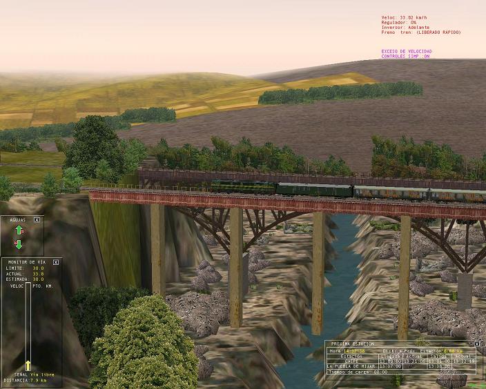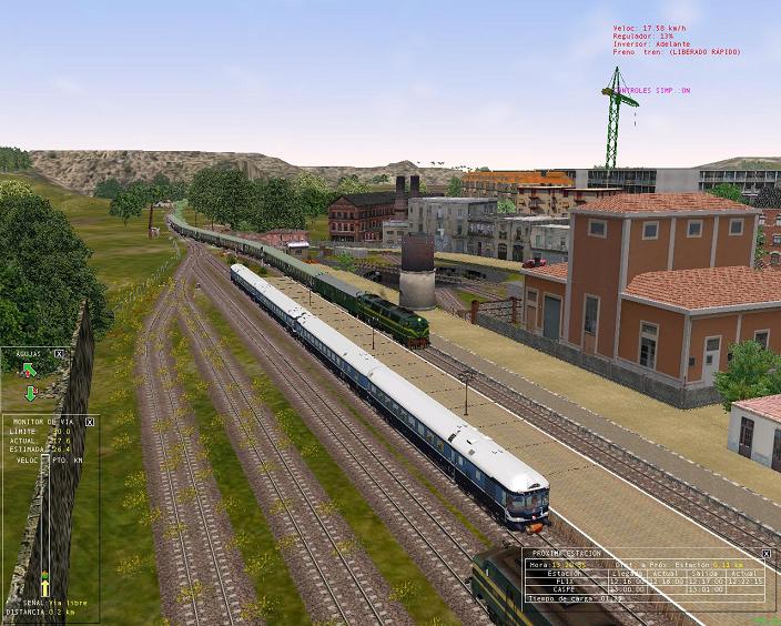 Comienzo sin problemas y todo trascurre de esta manera hasta que engancho la locomotora a los vagones. Cambio de cabina y aquí es donde empieza mi problema ya que no consigo que mi tren se mueva a pesar de que el velocímetro marca velocidad y me sale un mensaje diciendome que voy a más de 100 km/h. No hay mensajes de patinaje ni frenos bloqueados ni nada parecido.