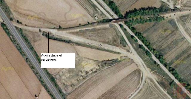 El cargadero estaba en esa zona, en la zona del círculo. La zona verdosa es la traza de la vía del Central.