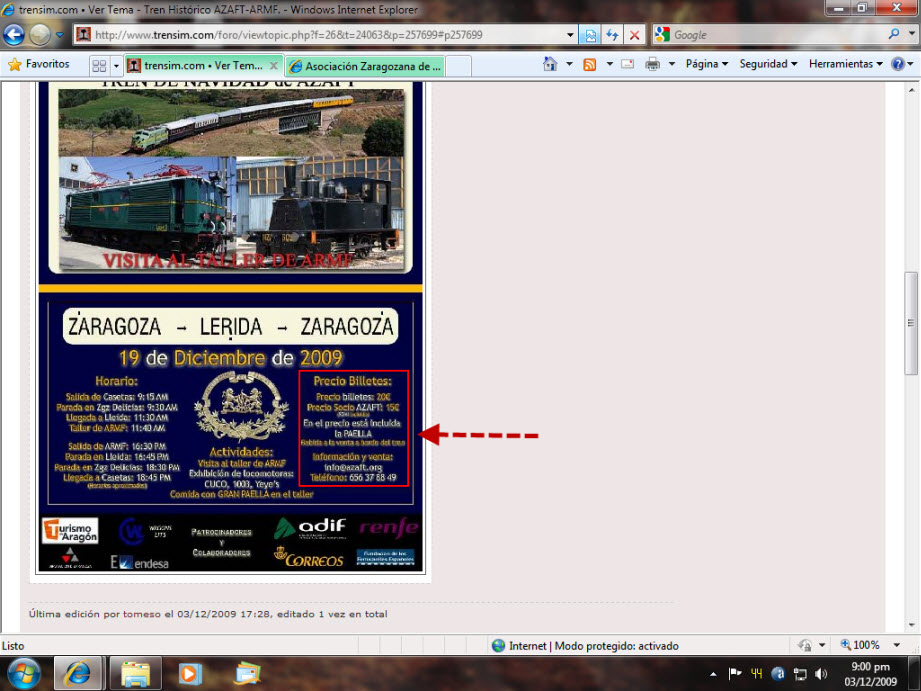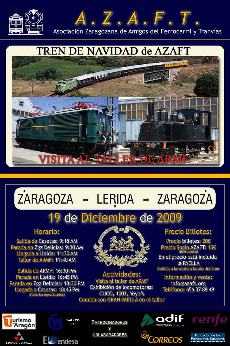 Todos los años la AZAFT celebra un viaje con motivo de las navidades, y éste año el destino es el taller de ARMF,para lo cual el 19 de diciembre se hará el viaje Zaragoza-ARMF con el tren de la AZAFT.