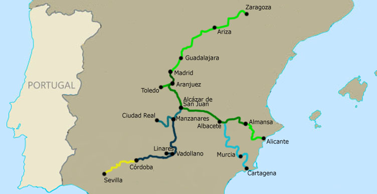 Ante el éxito del nuevo medio de transporte, Salamanca solicitó un proyecto de prolongación de Aranjuez a Almansa, punto que le permitía decidir "a posteriori" una ruta para alcanzar un puerto del mediterráneo: Valencia, Alicante o Cartagena.