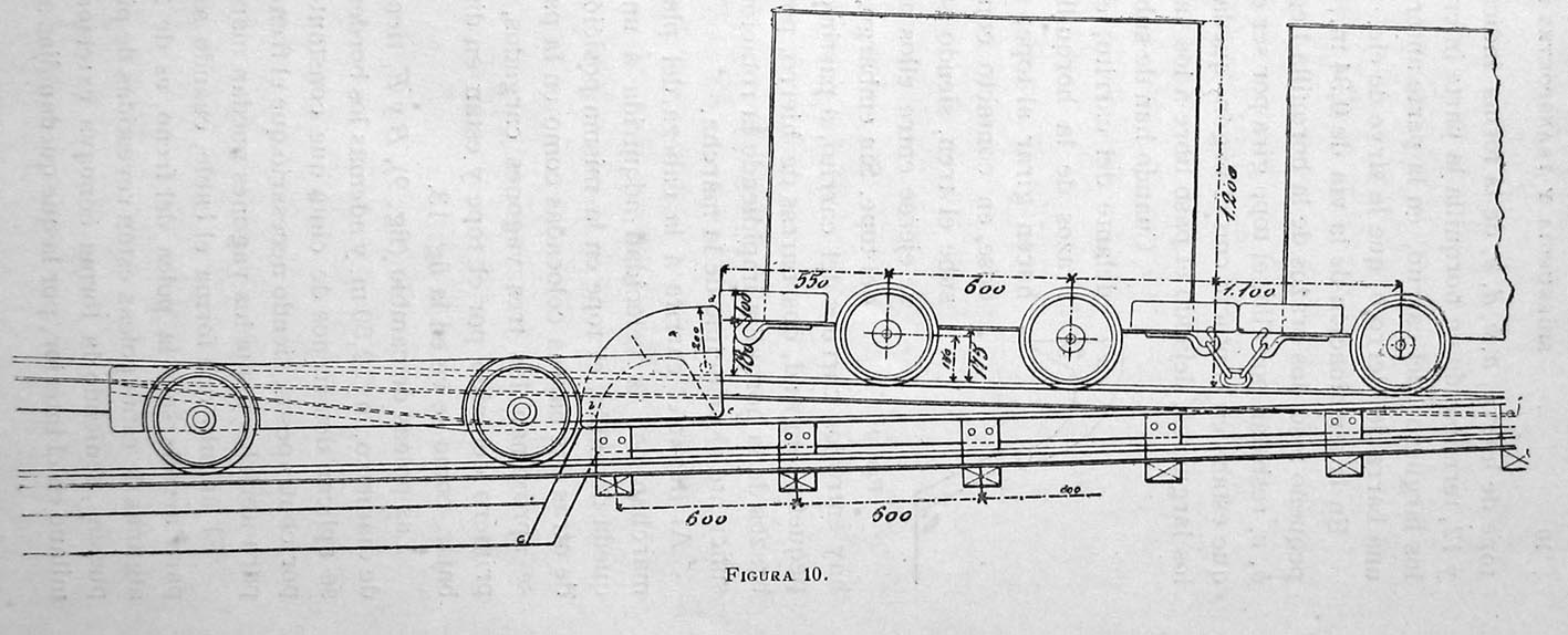 Veáse el gráfico correspondiente al pie de un plano de este tipo de la Sociedad Hullera Española, con el carrito en el foso. Los carriles de las vagonetas pasan por encima.