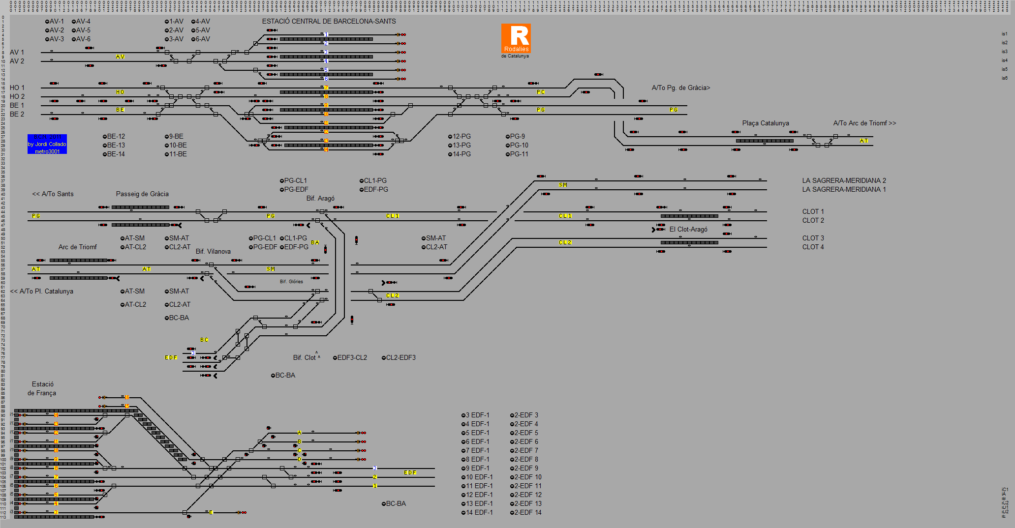 El escenario incluye las siguientes estaciones: Barcelona-Sants, Plaça Catalunya, Arc de Triomf, El Clot-Aragó, Passeig de Gràcia, y Barcelona- Estació de França.