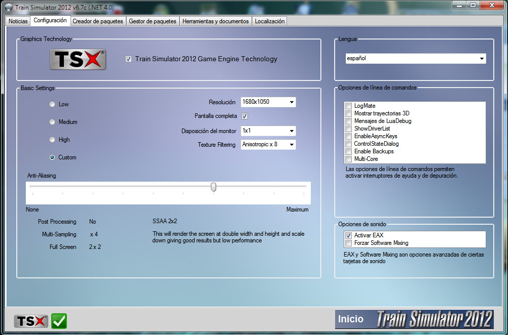 Pero...y si establecemos en el control de Nividia para Railworksproc2.exe una configuración personalizada de Anti-aliasing 16Q CSAA y un valor de anisotropia de 16x? Pues oiga, TS2012 no nos hace hace ni caso. ¿Y a usted?