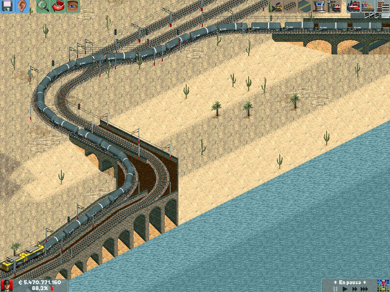 He creado un escenario con nombres aragoneses, asi que manos a la obra! Al crear la empresa he construido un ferrocarril que une la mina de Utrillas con la central térmica de Escucha. Unos años despues se consigue presupuesto para construir un ramal del mismo que une la mina de Albalate de Cinca. Desconozco por que algunas capturas se ven "enteras" por asi decirlo mientras que otras aparecen en los laterales las barritas de subir y bajar... que cosas.