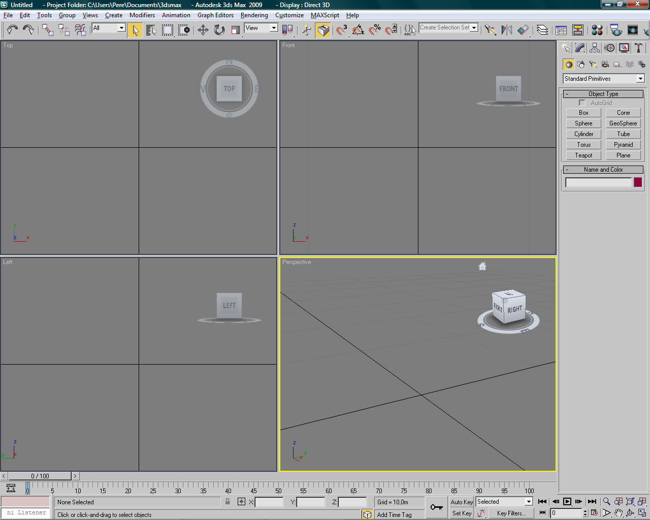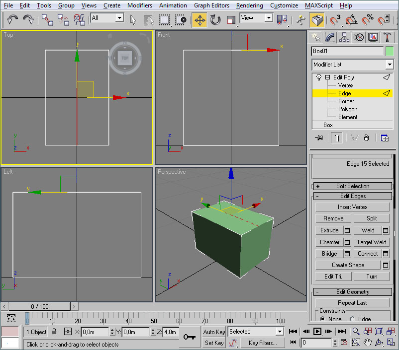A destacar también que si hacemos clic con el botón izquierdo del ratón sobre el nombre del viewport, este pasa a ser el viewport activo sin perderse la selección del objeto actual. Esto es importante para poder editar un objeto de forma continuada en todos los viewports, como veremos más adelante.