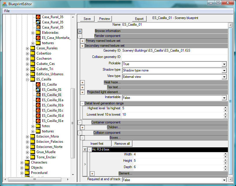 • Detail level generation range: estos dos parámetros determinan la probabilidad de que el objeto sea mostrado cuando el usuario reduce el nivel de detalle del juego por no disponer de una tarjeta gráfica potente. A destacar que la combinación de los valores 10 y 10 determina que el objeto será siempre visible con independencia de los deseos del usuario, y es útil para estaciones y elementos que "nunca" deben desaparecer de la ruta.