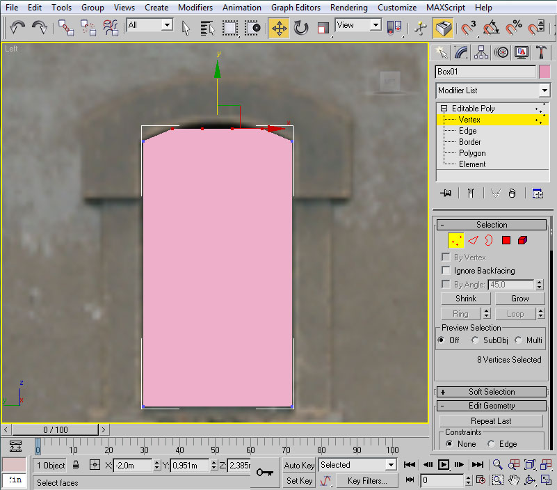Y mediante "Select and Move" los desplazaremos hacia arriba, usando la flecha verde, hasta que se ajusten al contorno del arco de la ventana: