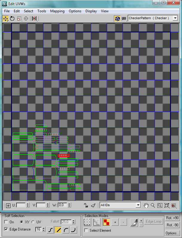 Si en el Stack de modificadores observamos que tenemos varios modificadores (tendremos un "Unwrap UVW" sobre "Editable Poly") desplegaremos el menú contextual del Stack de modificadores para solicitar un "Collapse All". De esta forma consolidamos dichos modificadores en la pieza y podemos seguir a partir de este punto. Esta operación de consolidar todos los modificadores de una pieza la deberíamos realizar cada vez que queramos dar por buenas las operaciones efectuadas, para evitar que éstas nos afecten a nuevas modificaciones, o siempre antes de exportar el modelo.