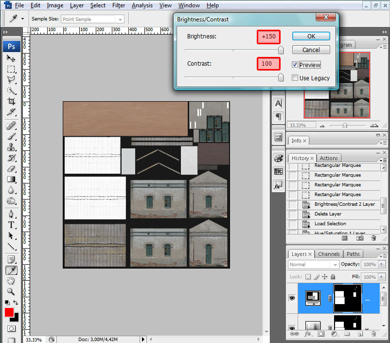 Con la textura así tratada podemos proceder a guardarla con formato .ACE, y le daremos el mismo nombre que la textura base, pero con el sufijo "_wi", es decir: "ES_Casilla_wi.ace". El motivo de tal sufijo es para indicarle al simulador que esta textura deberá sustituir a la original cuando la época del año sea invernal (ver el tratamiento del simulador a los Grupos de Texturas).
