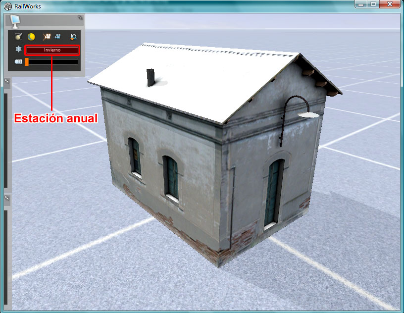 Una vez guardada la textura, para que esta sea reconocida tan sólo es necesario repetir el proceso de exportar la casilla desde 3ds Max, sin necesidad de realizar ninguna acción en el editor 3D. El proceso de exportación la reconoce y deja el archivo IGS listo para que la use. Por tanto repetimos dicha exportación desde 3ds y ya podremos abrir el Asset Editor para visualizar la casilla en invierno.