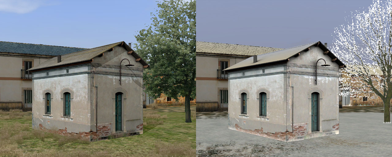 Todo lo comentado para las texturas de nieve es válido para otras texturas estacionales, como primavera u otoño, y tanto es de aplicación a edificios como a cualquier clase de creación en el simulador. Por tanto, nada nos impide realizar un vagón que en invierno se vea ligeramente cubierto de nieve, si es el caso ;)