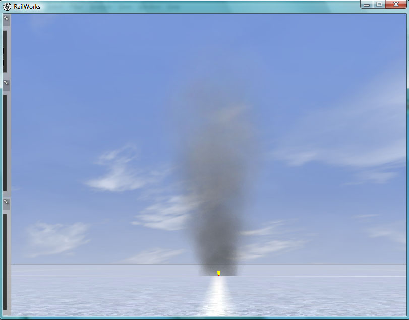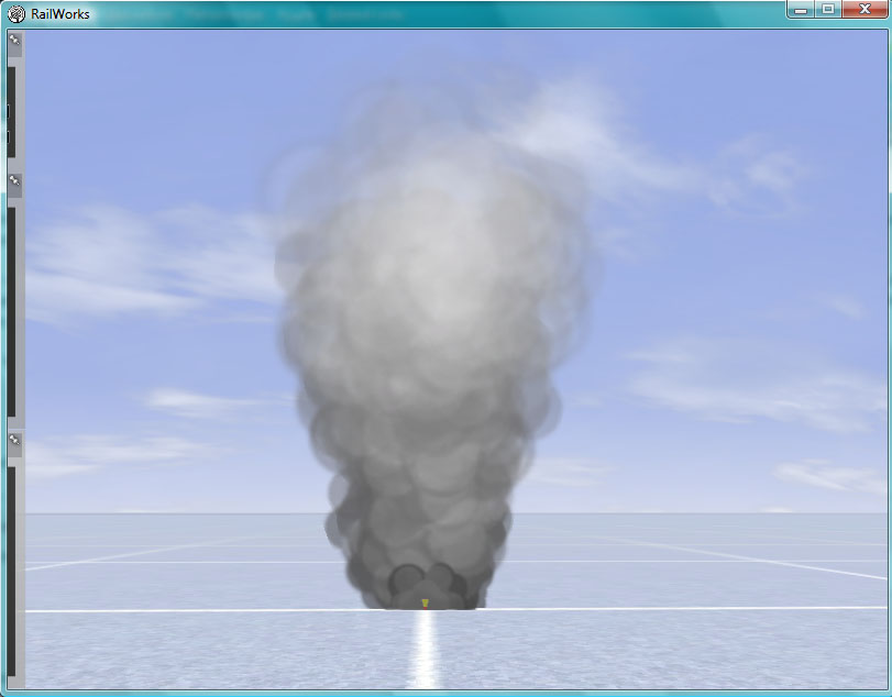Con estos conceptos nos debe bastar de momento, pero si os dais cuenta, vamos a crear un punto de emisión de partículas que, cual chorro, van a evolucionar en el simulador. Por tanto, el humo no es un cuerpo único y fijo, si no que está compuesto de muchos, variables e independientes. Esta definición nos permite, ajustando texturas y valores, simular tanto un humo como una caída de carbón (en los cargaderos), una nube de polvo levantada por un vehículo o las salpicaduras del agua en una cascada.
