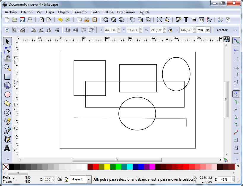 A continuación crearás las líneas, cuadrados y círculos que quieras para confeccionar el plano. Cada objeto que creas se ubica en una capa que está por delante de las de los objetos anteriores (puedes gestionar estas capas para llevarlas más adelante o más hacia atrás, pero eso es otra historia):