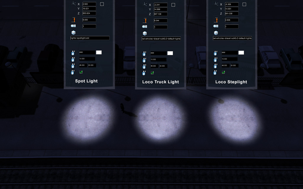 Debemos tener presente que el nombre de las luces es un convencionalismo para organizar y trabajar con las mismas. Partamos de la base que el motor renderizará lo que determine el fichero .bin de la luz. La única diferencia es su ubicación: en una ruta las colocamos manualmente en el lugar deseado, y en las locomotoras debemos indicarlo en un fichero (ver sobre este tema el trabajo de Jesús en viewtopic.php?f=34&t=27344 ).