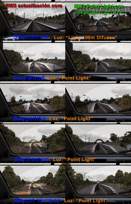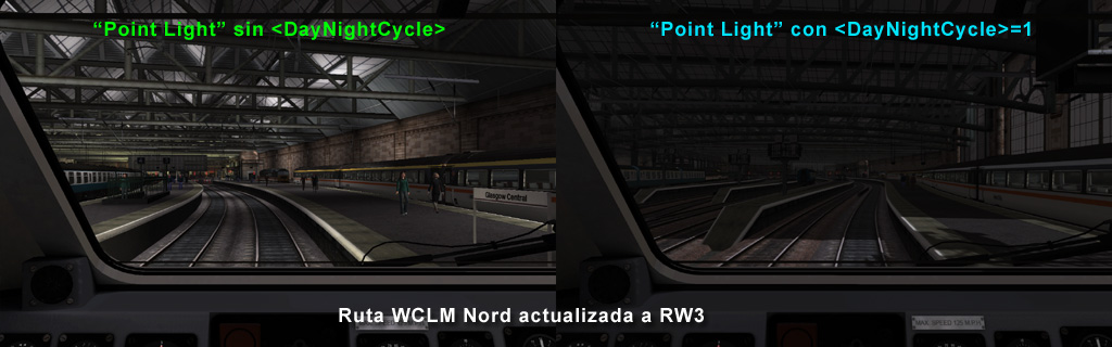 Pero claro, esto genera un problema: en las estaciones con interior o bajo tierra, si el creador de la ruta las ha iluminado con "Point Light", de día estarán apagadas (también si las ha iluminado con "Light 100m Diffuse"):