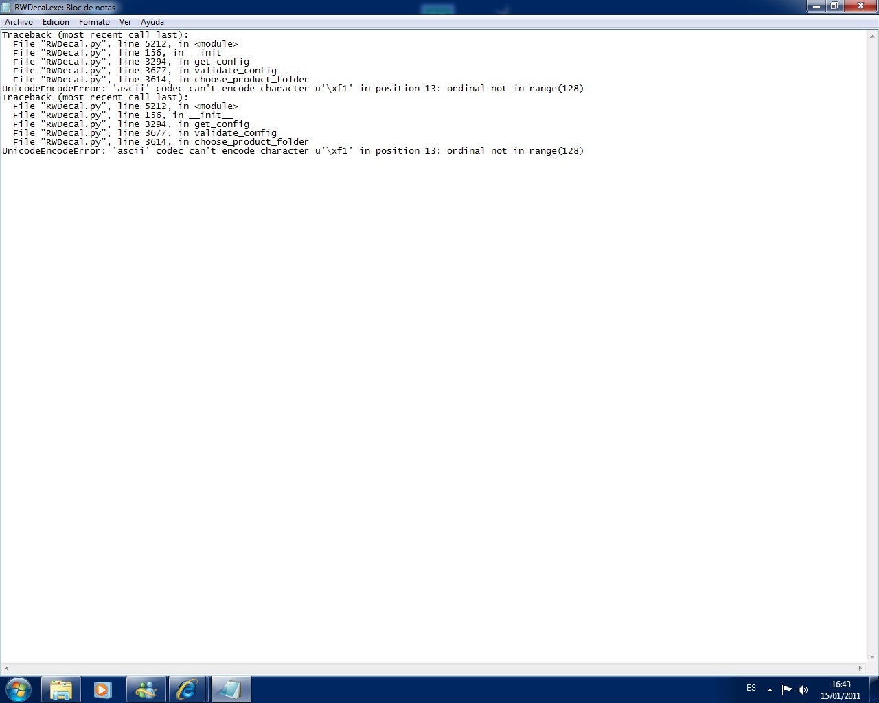 Me he bajado e instalado el RWDecal 2.1.14. No sé cómo funciona... Me sale un error :oops: : Al iniciar me va preguntando por los directorios Developer y Product Las cuales le indico y el programa me remite al documento de texto RWDecal.exe, el cual adjunto en este mensaje. Si alguien me puede guiar se lo agradecería.
