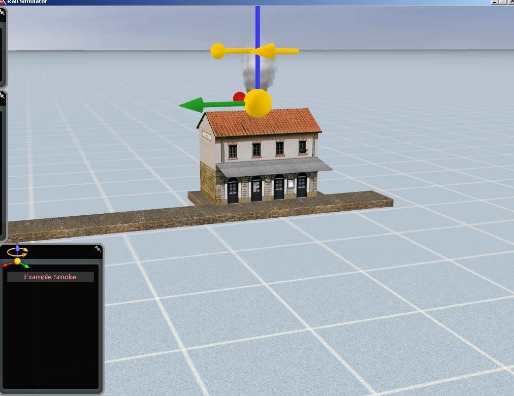 Copia la carpeta del humo de ejemplo C:\...\Rail Simulator\Source\Developer\Addon\Particles en la misma en que tengas la Scenery donde esté el edificio.