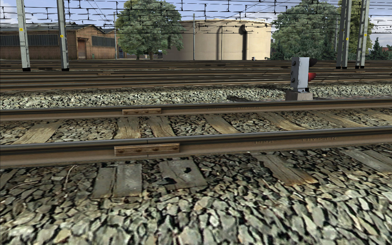 De momento las vías ya no tienen sombras extrañas, he podido mejorar las texturas, evitar los molestos parpadeos en los desvíos y adaptarlas para peraltes.