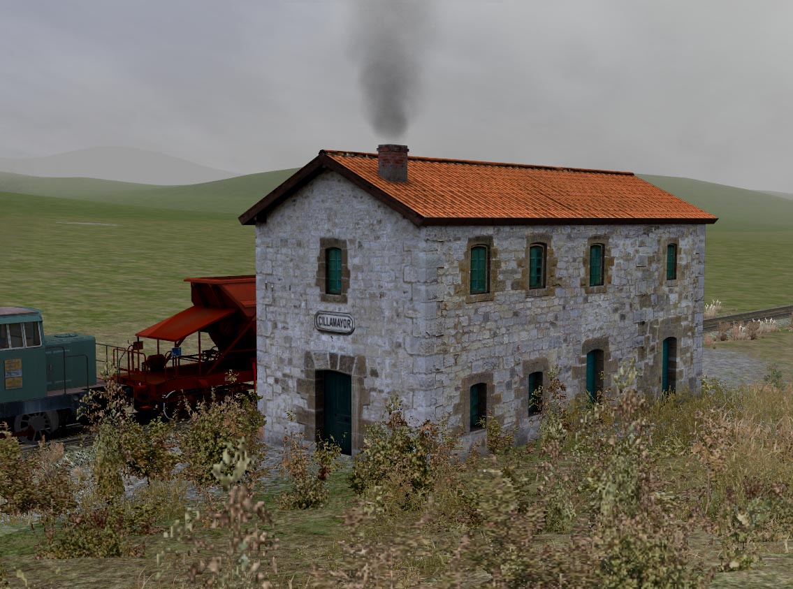 Una vez aplicadas las cosas que permite el RW (render to texture, mapas de normales, sombras, humo, etc) la estación de Cillamayor ya va cogiendo el ambiente que merece.