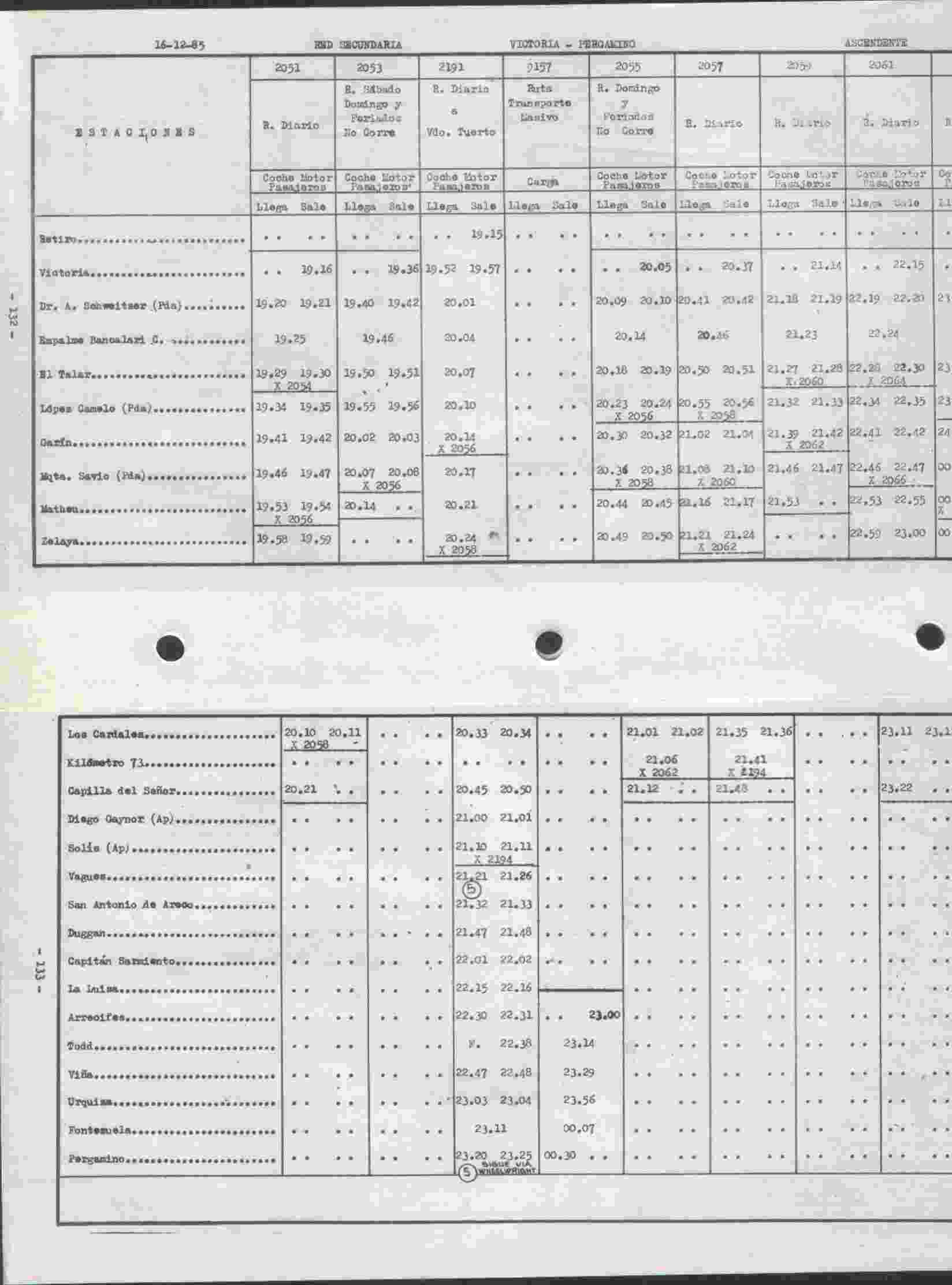 El que procedía de Venado Tuerto salía de esta estación a las 3.20 de la mañana diariamente y el que terminaba en Pergamino corría solamente los domingos y días feriados.