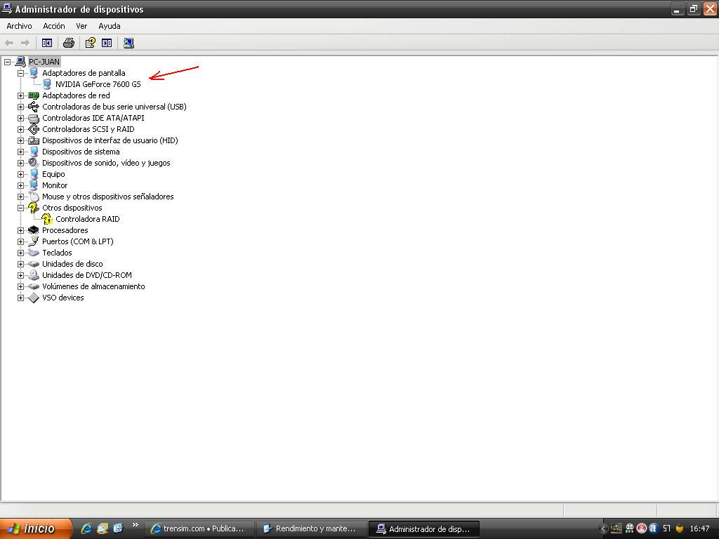 Inicio => Panel de control => Sistema => Hardware => Administrador de dispositivos => Adaptadores de pantalla