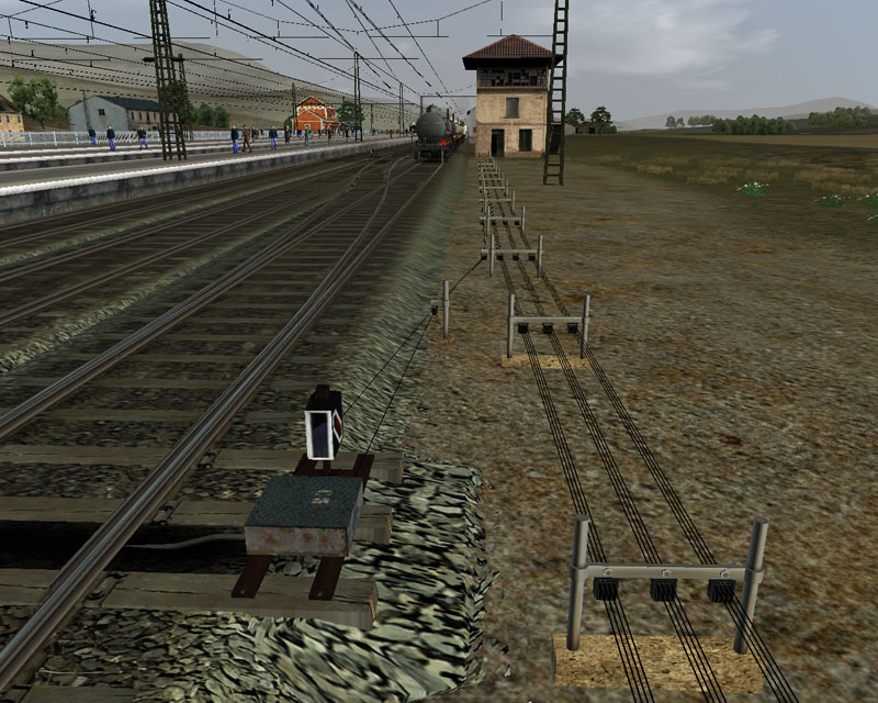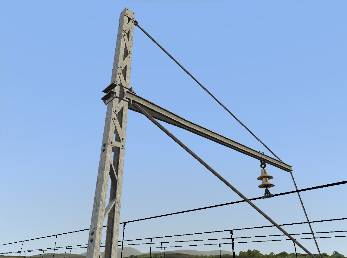 Por último, la vía incorpora, si así lo desea el creador de la ruta, catenaria de doble hilo de contacto, que irá acompañada de unos postes P2, todo ello de la compañía del Norte: