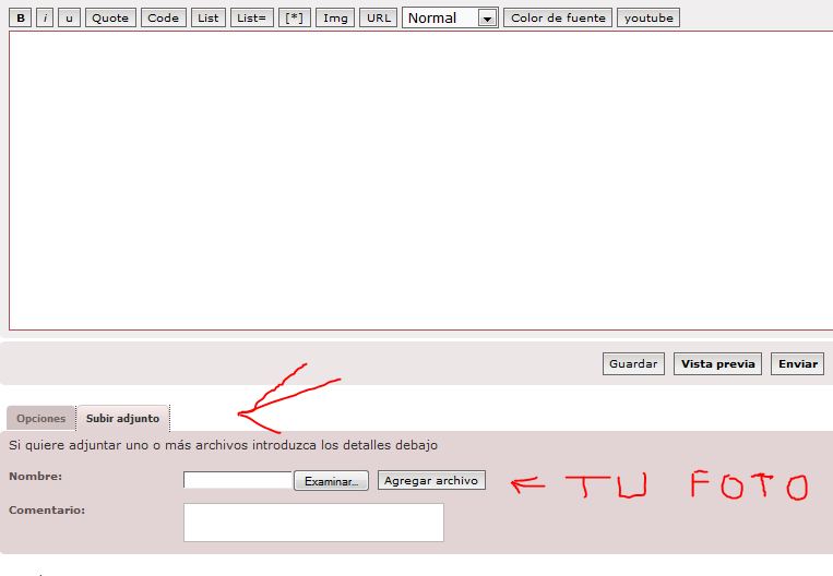 O subelas a imageshack y copia el link que dice, "Forums", lo pegas en el post y listo