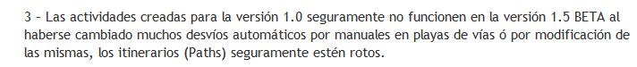 Jotas escribió:Perdonar me lo he leído todo la versión 1.0 me funciona perfectamente, es al poner la beta siguiendo todos los pasos, vía métrica, xtracs, lo de los coches, cuando carga las actividades se sale fuera del tren simulator..