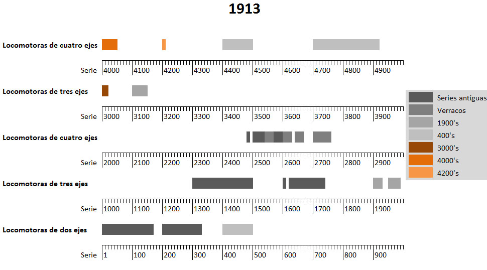 • Las nuevas locomotoras que se adquiriesen de cuatro ejes acoplados se encuadrarían en el millar 4000.