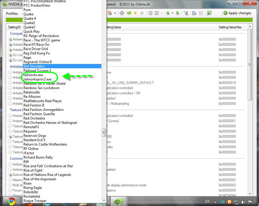 Acabo de comprobar que en el Nvidia Inspector no sale la configuracion de Railworks hasta que tu no la creas en el programa de configuarción oficial de la tarjeta. Una vez lo creas aqui ya te sale en el Nvidia Inspector con los parametros que hayas puesto, total, que una cosa es la misma que la otra y al final tienes que poner tu los parametros a mano.