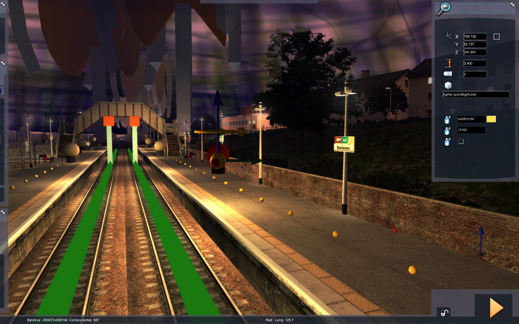 Ahora en vez de alumbrar las estaciones con el '100mDiffuseSpot' alumbramos con el '100mDiffuseSpotDay' y la luz permanecera alumbrando tanto de día como de noche...