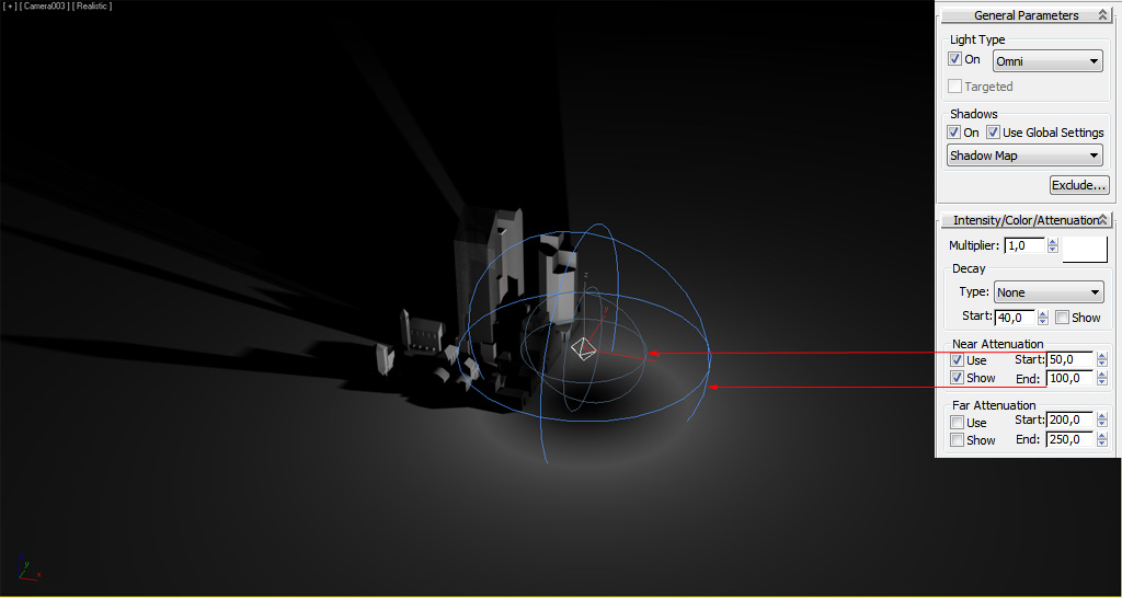 Como las luces "Point" u "Omni", podemos ajustar el multiplicador/intensidad: