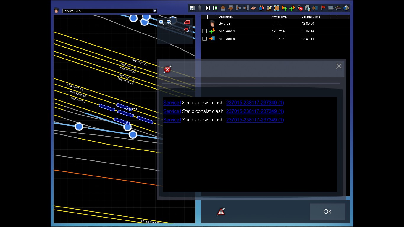 El dispatcher sigue siendo tan tonto que incluso cuando colocas un consist estático en una vía por la que va a circular cualquier IA no te avisa, tanto da que sean cambios manuales como automáticos; sólo te enteras cuando estás en medio de la actividad y te echa fuera por una colisión de IA.