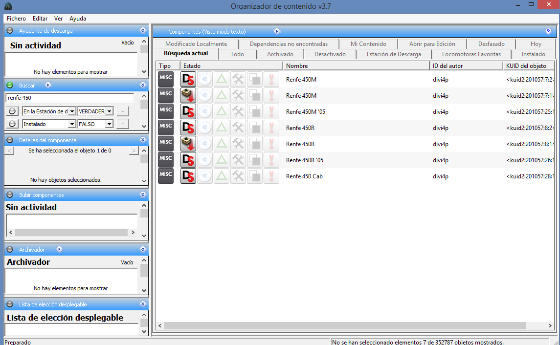 Hola, buenas tardes en su momento ya me leí el manual del juego. Pero no aclara ninguna duda de lo que me ocurre... A ver, yo por ejemplo me descargo un tren, viene en un Zip, lo extraigo y tengo el archivo CDP. Una vez tengo abierto el organizador de contenido me voy a Fichero, y selecciono la opción "Importar CDP" Selecciono el archivo y todo bien, luego me voy al buscador y encuentro los archivos de la locomotora que me he descargado. Hago lo que me han comentado en otros foros click derecho y descargar. Veo que arriba a la derecha en descargas comienza y muy poco a poco se van descargando los archivos con su click verde. Una vez ha acabado me voy a las cocheras y este es el resultado. Desde luego, no se si estaré haciendo algo mal...