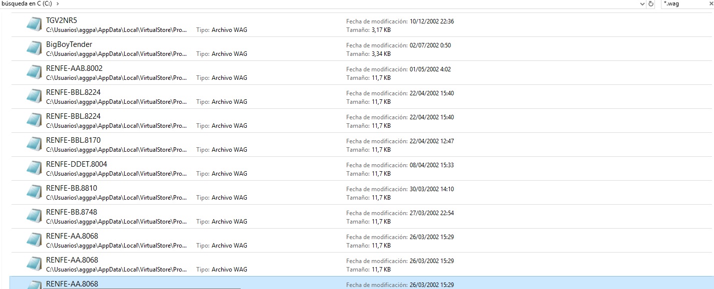 La cuestión es que NO me salen los archivos en la carpeta Trainset, ya que quería modificar los .wag para poder poner las vistas interiores (vista 5).